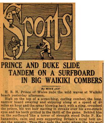 Il principe è stato immortalato sulla spiaggia di Waikiki mentre prende lezioni di surf da Duke Kahanamoku, campione olimpionico di nuoto considerato l'inventore del surf moderno