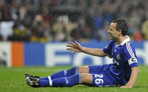 John Terry, capitano del Chelsea, disperato dopo esser scivolato sul dischetto del rigore bagnato durante la finale di Champions del 2008 tra i Blues e il Manchester United. Chissà quante volte il capitano avrà maledetto l’acqua presente sul campo dello stadio di Mosca -