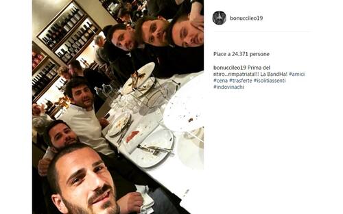 Prima del ritiro con la Nazionale cena con amici per Leonardo Bonucci, punto di riferimento imprescindibile per l'Italia di Gianpiero Ventura (foto da Instagram) -