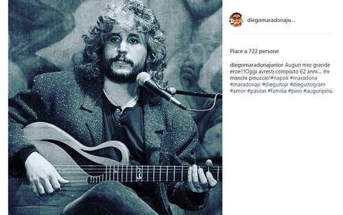 Lo stesso Diego ha avuto un bellissimo pensiero anche per Pino Daniele, che ieri avrebbe compiuto 62 anni, proprio nel giorno di San Giuseppe (foto da Instagram) -