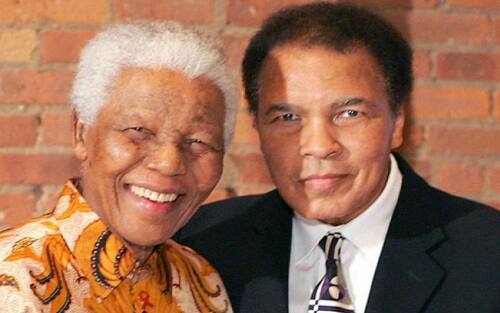 La passione di Mandela per il pugilato ha spesso portato i grandi di questo sport ad omaggiarlo. Ecco qui Madiba con Muhammed Ali, il più grande -