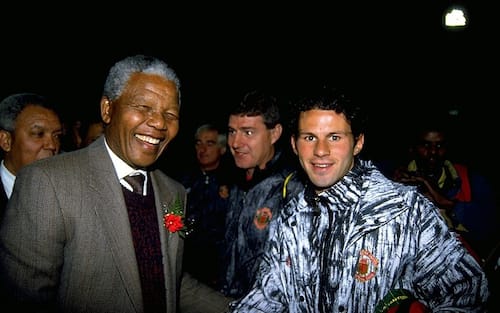 Mandela con un giovanissimo Ryan Giggs a Johannesburg nel 1993 -