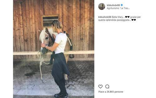 Dolcissima con la cavallina Mary, che l'ha portata un po' a spasso... (foto da Instagram) -