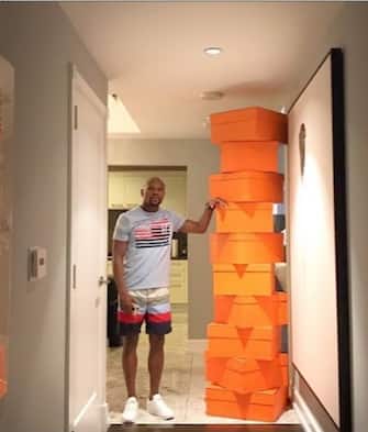 Il pugile si lamenta sui social della sua scarpiera in cui ha potuto mettere "solo" 80 paia di sneakers Louboutin -