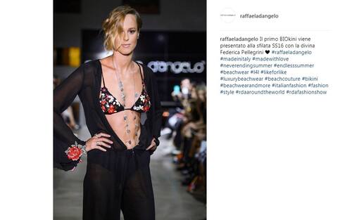 Anche quest'anno Federica Pellegrini è stata la testimonial della Maison di Raffaela D’Angelo nella settimana della moda milanese. Stavolta la campionessa di nuoto ha "sperimentato" un nuovo costume, il "paint-kini", dipinto a mano. Elegantissima la "divina" anche in altri eventi che l'hanno vista protagonista in questi giorni