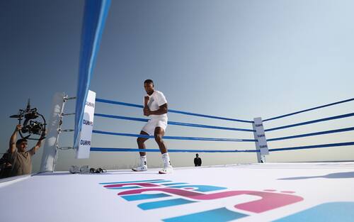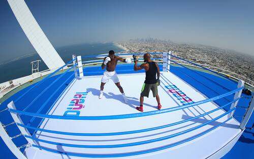 Il campione dei pesi massimi Anthony Joshua (oro olimpico a Londra 2012 e campione del mondo come James DeGale) si è allenato sul tetto di uno dei grattacieli icona di Dubai, il famoso Burj Al Arab. Il britannico è arrivato negli Emirati Arabi per il Dubai Fitness Challenge e le immagini dell'allenamento sono spettacolari