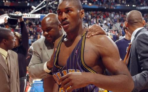 Il litigio con Ben Wallace provocò una maxi rissa: Ron Artest si scagliò contro un tifoso e venne squalificato per tutta la stagione
