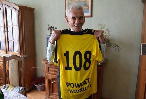 Si tiene stretta la maglia, l'atleta polacco del 1910. 108 sono gli anni del super sprinter, il più anziano di tutti!