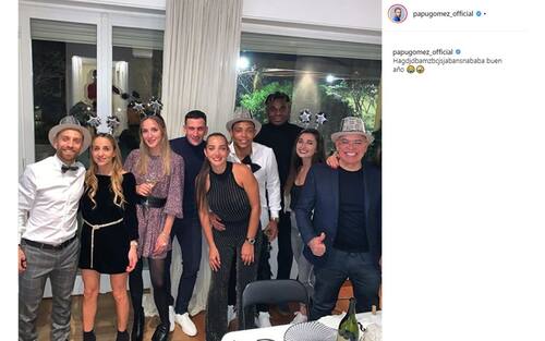 Dopo aver brindato... un messaggio in Papu style! Con lui anche i compagni dell'Atalanta Duvan Zupata e Luis Muriel (foto da Instagram)