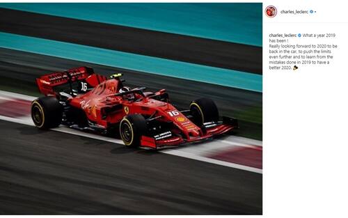 Il pilota della Ferrari Charles Leclerc è orgoglioso del suo 2019, ma promette anche che imparerà dagli errori dell'anno scorso per fare meglio nel 2020 (foto da Instagram)