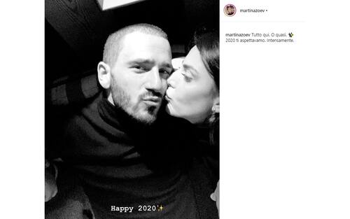 E dopo il "sospirato" cenone... arriva il momento degli auguri, rigorosamente in "bianconero", per Leonardo e Martina Bonucci (foto da Instagram)