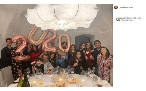 L'allenatore dell'Inter Antonio Conte (a destra nella foto) festeggia l'arrivo del 2020 con la famiglia e tanti amici, tra cui il "maestro" Andrea Pirlo (Instagram)
