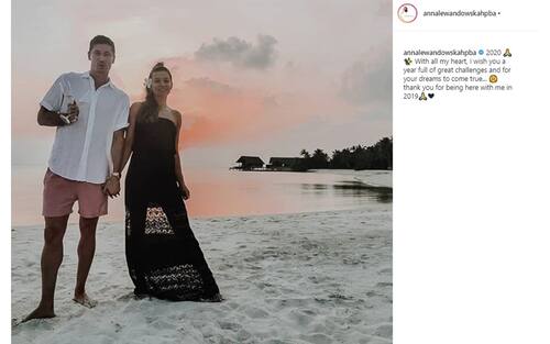 Il centravanti del Bayern Robert Lewandowski e la moglie Anna in dolcissima attesa... del 2020 (foto da Instagram)