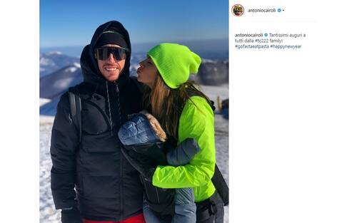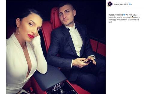L'augurio del centrocampista della Nazionale e del Psg Marco Verratti in compagnia della fidanzata Jessica Aidi (foto da Instagram)