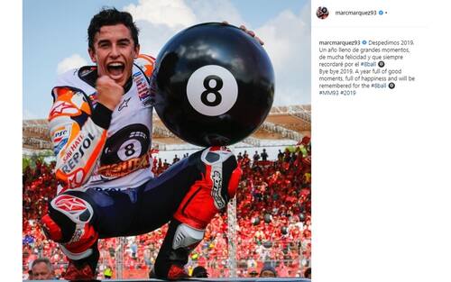 L'augurio del campione spagnolo della MotoGp Marc Marquez che, nel 2019, ha conquistato il suo 8° titolo mondiale (foto da Instagram)