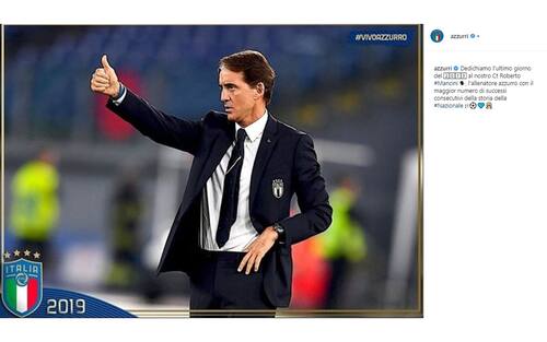 La Nazionale italiana di calcio e il suo ct Roberto Mancini salutano un anno da record, ma "ora bisogna continuare nel 2020", a giugno gli Azzurri sono attesi dagli Europei (foto da Instagram)
