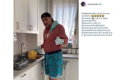 Tra i più "attivi" Bobo Vieri, che ha promesso alla sua Costanza (in dolce attesa) di pulire casa per due settimane (foto Instagram @christianvieri)