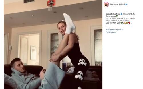 Da Roma a Milano, con il "Toro" dell'Inter Lautaro Martinez e la sua fidanzata Agustina, anche per loro "entreniamento" casalingo (foto Instagram @lautaromartinez)
