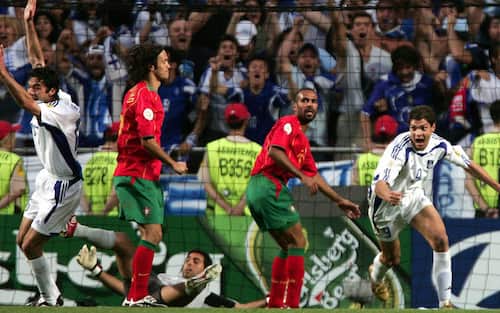 LA GRECIA VINCE EURO 2004. Partita a fari spenti, la squadra di Otto Rehhagel compie un autentico miracolo. Dopo aver passato per differenza reti il girone, batte Francia, Repubblica Ceca e arriva in finale contro il Portogallo, favorito e padrone di casa. Non bastano Ronaldo, Figo e Rui Costa ai lusitani: a decidere il match è Charisteas, che gela il Da Luz e fa esplodere la gioia in un intero Paese