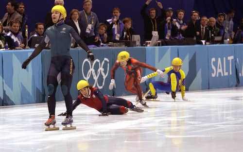 BRADBURY, L'ORO PIU' ASSURDO DEI GIOCHI. Giochi di Salt Lake City 2002, finale dei 1000 di short track. Ripescato dai quarti, secondo in semifinale grazie a una caduta collettiva, Steven Bradbury da Sydney entra in finale. Staccato fin dal primo giro, vede cadere tutti i suoi rivali all'ultima curva: alza le braccia al cielo e conquista l'oro olimpico, divenendo l'idolo indiscusso di una generazione grazie al'ironia della Gialappa's