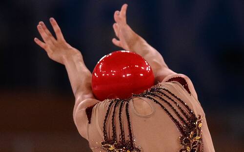 6 agosto 2021. La statunitense Evita Griskenas durante la prova all-around individuale di ginnastica ritmica a Tokyo 2020