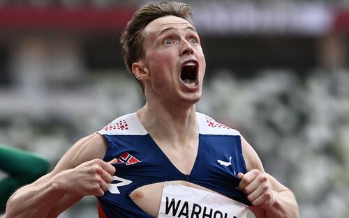 3 agosto 2021. Il norvegese Karsten Warholm esulta furiosamente dopo il trionfo, con tanto di record del mondo, nella finale olimpica dei 400 ostacoli