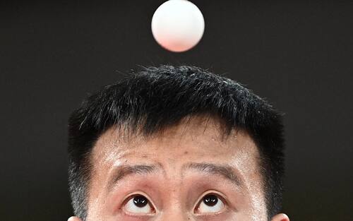 26 luglio 2021. La concentrazione dello slovacco Yang Wang nel match contro l'australiano Dave Powell durante il torneo olimpico di singolare maschile di tennis tavolo al Tokyo Metropolitan Gymnasium