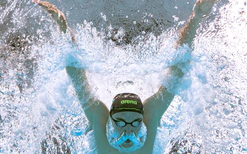 30 luglio 2021. Una foto sotto l'acqua dell'ungherese Kristof Milak, che stabilirà il record olimpico nella semifinale dei 100 farfalla al Tokyo Aquatics Centre