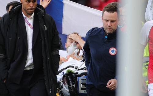 12 giugno 2021. La prima foto di Christian Eriksen cosciente dopo l'attacco cardiaco subito nel match Danimarca-Finlandia di Copenaghen, valido per Euro 2020