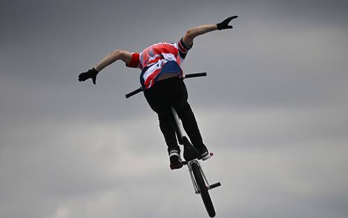 31 luglio 2021. Il britannico Declan Brooks durante la competizione olimpica di BMX freestyle all'Ariake Urban Sports Park di Tokyo