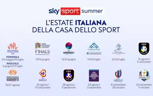 Si accende Sky Sport Summer sul canale 201 per seguire l'estate più italiana di sempre nella Casa dello Sport di Sky. Un canale attivo fino al 3 settembre, per seguire tutti i grandi eventi sportivi: dalla pallavolo al basket, passando per tennis, calcio, nuoto, atletica e non solo. Ecco tutti gli appuntamenti da non perdere nei prossimi mesi su Sky