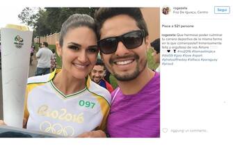 Insieme al compagno Rodrigo Galeano Zarza con la torcia olimpica per le strade di Rio (foto da Instagram) -