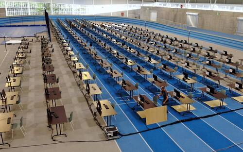 L'Università belga di Louvain-la-Neuve (a circa 30km dalla capitale Bruxelles) farà svolgere gli esami nel centro sportivo di Blocry, precisamente sulla pista di atletica indoor. Una soluzione trovata per venire incontro alle esigenze degli studenti che non dispongono di una connessione wifi a banda larga e avrebbero difficoltà a sostenere le prove da casa