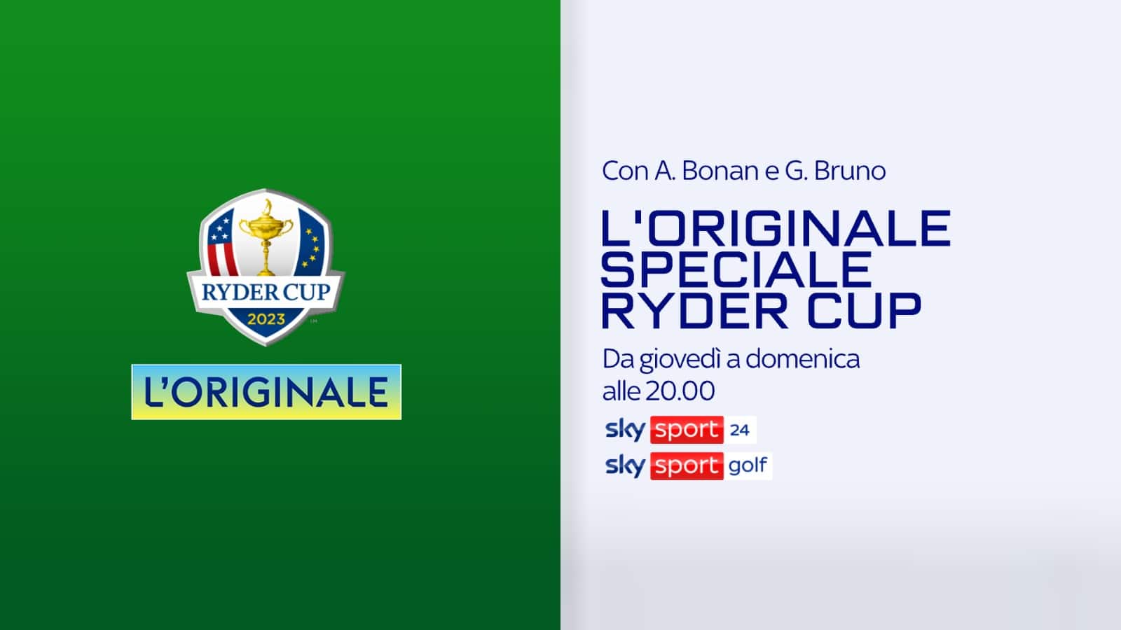 Da giovedì a domenica alle 20 su Sky Sport 24 Alessandro Bonan condurrà una striscia quotidiana, dal titolo “L’originale - Speciale Ryder Cup”: la giornata di gara verrà raccontata e commentata in 15 minuti, mettendo insieme informazione, leggerezza, ironia e competenza, con ospiti in studio e in collegamento dal Marco Simone Golf & Country Club.