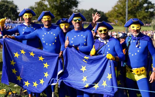 E' stato un weekend di festa e colore al Marco Simone Golf & Country Club di Roma, dove Europa e Stati Uniti hanno acceso la fantasia delle migliaia di tifosi che sono accorsi sul green a godersi una manifestazione unica. Tra hot dog, centurioni e travestimenti improbabili, ecco lo spettacolo dei supporters. Tutto in diretta su Sky Sport Golf e in streaming su NOW