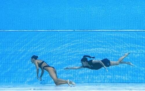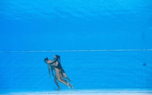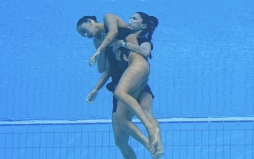 L'allenatrice di Alvarez, Andrea Fuentes, capisce per prima la gravità della situazione e si tuffa per soccorrere la sua allieva