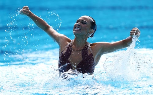 Anita Alvarez è impegnata nel suo esercizio individuale ai Mondiali di nuoto sincronizzato di Budapest 2022