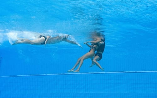 Un'altra persona si tuffa in piscina per dare manforte ad Andrea Fuentes