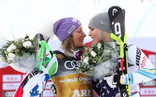 I complimenti di Lindsey alla vincitrice di giornata Ilka Stuhec