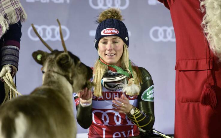 Un’alzata di spalle e un sorriso soddisfatto sul traguardo della pista Black Levi in Finlandia: Mikaela Schiffrin conquista il primo slalom della nuova stagione di Coppa del mondo e porta a 41 le vittorie in questa specialità diventando la più vincente, superando anche il record della leggenda svedese Ingemar Stenmark (fermatosi. La statunitense, seconda nella prima manche a soli 13 centesimi dalla slovacca Petra Vhlova, ha cambiato marcia e ha sciato la seconda come soltanto lei sa fare. Solida, linee precise alla base del palo, in continuo incremento di velocità, capace di cambiare ritmo e di adattarsi nei vari cambi di pendenza, la Shiffrin ha sfruttato al meglio i suoi magici piedi, e le sue capacità tattiche nei punti chiave del tracciato. Si dispera invece la slovacca Petra Vlhova, allenata dall’italiano Livio Magoni, che dopo aver tagliato troppo sul primo cambio di pendenza è stata rimbalzata a pelle di leone e ha consegnato alla Shiffrin la quarta vittoria a Levi (con tanto di renna in regalo), ma anche il 61mo successo in carriera. La fuoriclasse statunitense, vincitrice di 3 coppe generali, 8 coppe di specialità, 3 medaglie olimpiche e 5 iridate, ha staccato di 1’’78 la svizzera Wendy Holdner autrice di un’ottima seconda manche. Terzo posto a 1’’94, ma soprattutto primo podio in carriera, per l’austriaca Katarina Truppe. Giornata difficile per l’Italia che sta provando a ricostruire una squadra di speciale ma che avrà bisogno ancora di tempo per lavorare e crescere. L’unica azzurra al traguardo è stata Martina Peterlini 26esima, scesa con il pettorale 46 e arrivata al traguardo con un distacco molto alto di 5’’37: Per lei, a 21 anni, sono comunque i primi punti in coppa del mondo