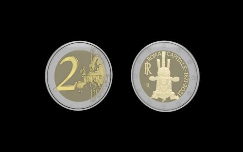 ROMA CAPITALE - Una moneta, in differenti versioni, dedicata al 150° anniversario di Roma come capitale d'Italia. Questa, in versione fior di conio e dal valore di 10 euro, propone sul fronte un particolare della Dea Roma, scultura di Angelo Zanelli inserita al centro dell’Altare della Patria, una grande ara votiva dedicata alla nazione italiana incastonata nel complesso del Vittoriano a Roma. In alto la scritta “ROMA CAPITALE”; a destra le date “•1871•2021•”