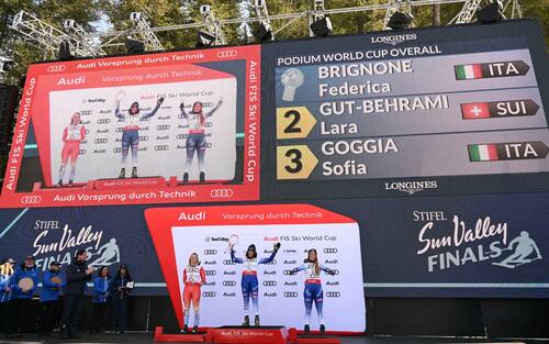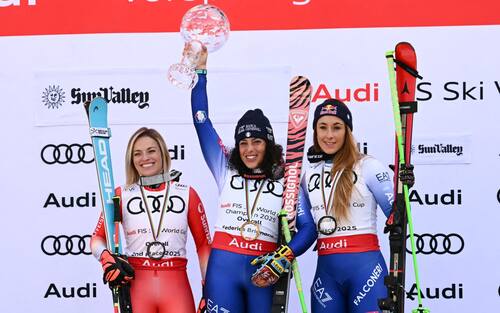 Il momento più atteso a Sun Valley è arrivato: Federica Brignone ha ricevuto la sfera di cristallo per la vittoria della classifica generale. Gioia, sorrisi e anche un pizzico di emozione per la Tigre di La Salle. Sul podio anche Sofia Goggia, terza: per la prima volta nella storia due azzurre in top 3 di Coppa del Mondo. Gli scatti più belli della cerimonia