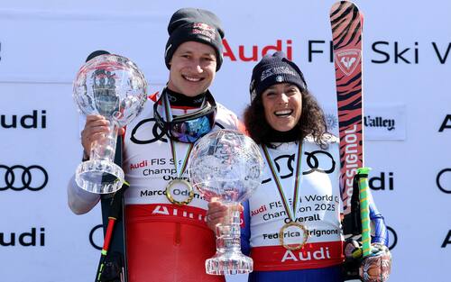 - Infine lo scatto dei campioni insieme a Marco Odermatt, vincitore della classifica generale maschile per la quarta volta in carriera