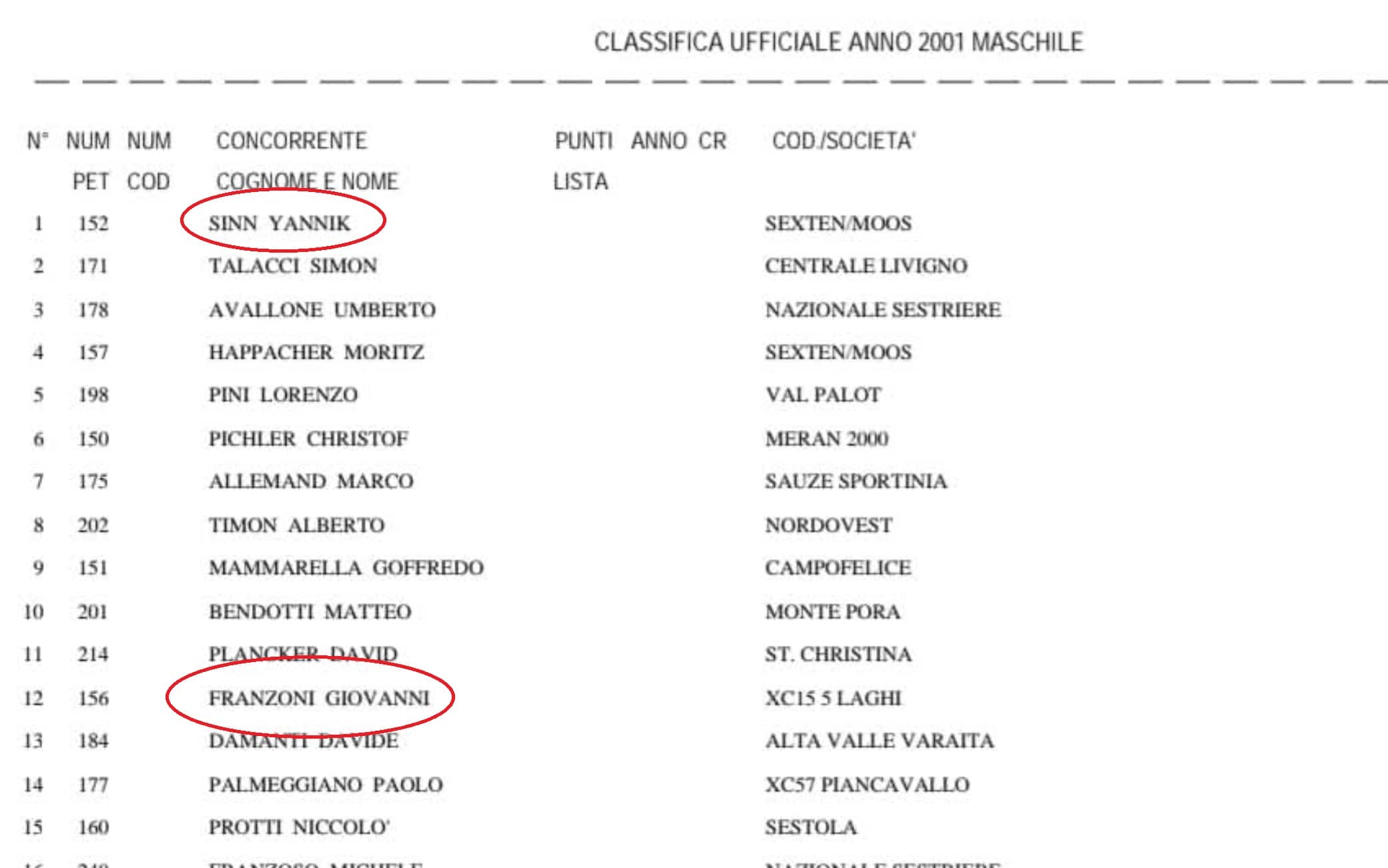 Tra i successi sugli sci da ragazzo di Sinner c'è una gara a San Sicario nel 2009: nell'ordine d'arrivo c'era anche Giovanni Franzoso, protagonista del weekend con il successo in superG e il terzo posto in discesa a Wengen, arrivato al traguardo con 4 secondi di ritardo da Jannik