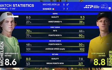 Sinner-Michelsen, le statistiche chiave della vittoria