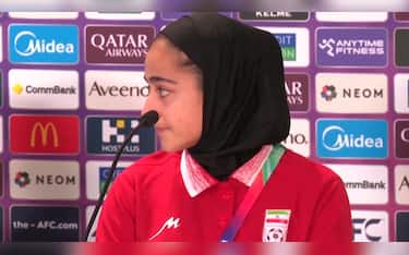 Guerra in Iran, la calciatrice trattiene le lacrime. VIDEO
