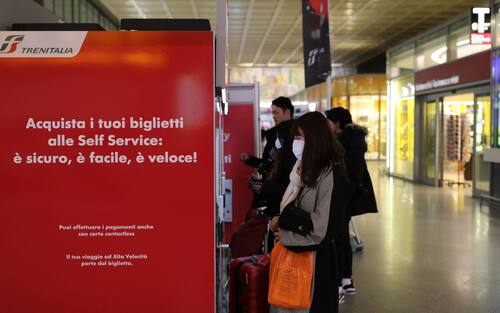 IN TRENO E NELLE STAZIONI - Sempre presente e fondamentale il distanziamento. In più: percorsi separati per ingresso e uscita dai mezzi pubblici e anche dalle stazioni, con la creazione di percorsi "a senso unico".