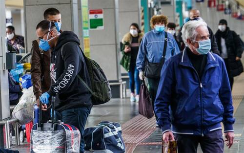 Ripresa anche a Roma, dove il punto focale di trasporti resta la Stazione Termini, dove lo scenario era questo. Una fila per salire un'altra per scendere dai treni, controllo dell'autocertificazione in entrambi i varchi e volontari della Croce rossa che misurano la temperatura a chi è in partenza con termoscanner
