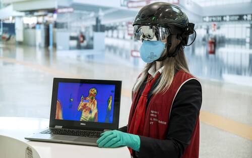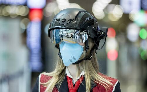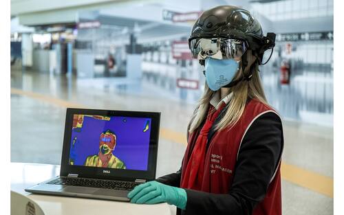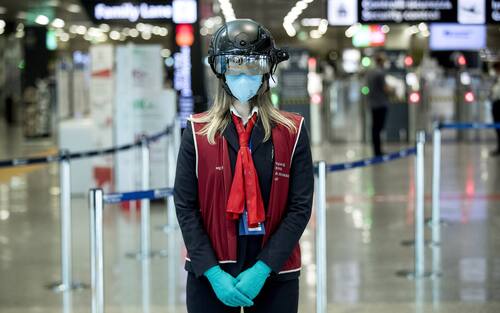 Sbarca all'Aeroporto di Fiumicino, primo scalo in Europa, lo "Smart Helmet", una sorta di termoscanner portatile: un elmetto con uno schermo a specchio, che si indossa sulla testa e che grazie a un sistema di realtà aumentata è in grado di permettere agli operatori aeroportuali autorizzati di controllare e misurare, fino a una distanza di 7 metri, la temperatura corporea di passeggeri e addetti ai lavori