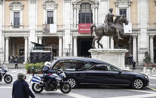 A causa delle restrizioni per il virus la città non ha potuto salutare Proietti come certamente avrebbe voluto, così è stato lui a fare un ultimo "tour" della sua Roma, fino in cima al Campidoglio. Come soltanto ai grandi cittadini, al feretro, ricoperto di rose rosse, è stato concesso eccezionalmente il giro intorno al Marco Aurelio, accolto dal saluto militare di tutte le forze di polizia cittadine.